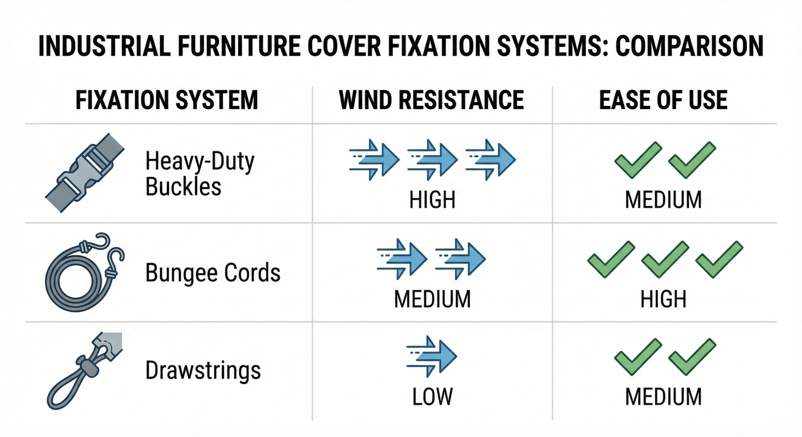 Outdoor furniture covers utilize different mechanisms for securing the hem, and the choice between them should depend on the expected wind exposure and frequency of access. Comparing the pros and cons of bungee cords, buckles, and drawstrings allows logistics managers to select the most efficient system for their specific workflow. A secure fit is the final step in ensuring that the protective barrier functions as intended throughout the storage lifecycle.