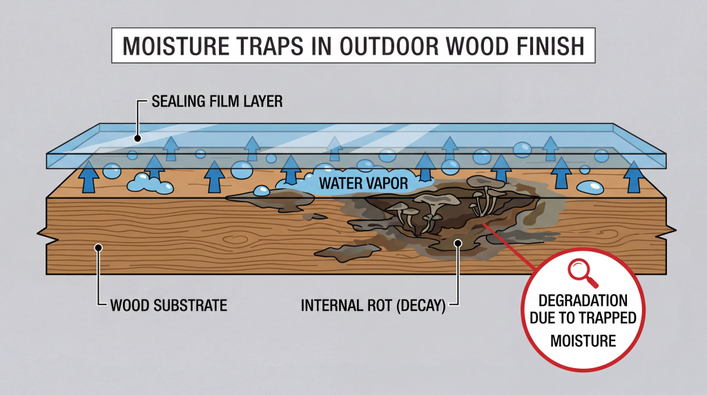 Liquid water and water vapor are the primary drivers of rot and fungal growth, making moisture management the most critical function of your chosen outdoor wood finish. Even a tiny breach in the coating can lead to “back-wetting,” where water gets trapped under the finish and cannot evaporate, leading to rapid decay. You must select a finish that is breathable enough to allow internal moisture to escape while being hydrophobic enough to repel external rain.