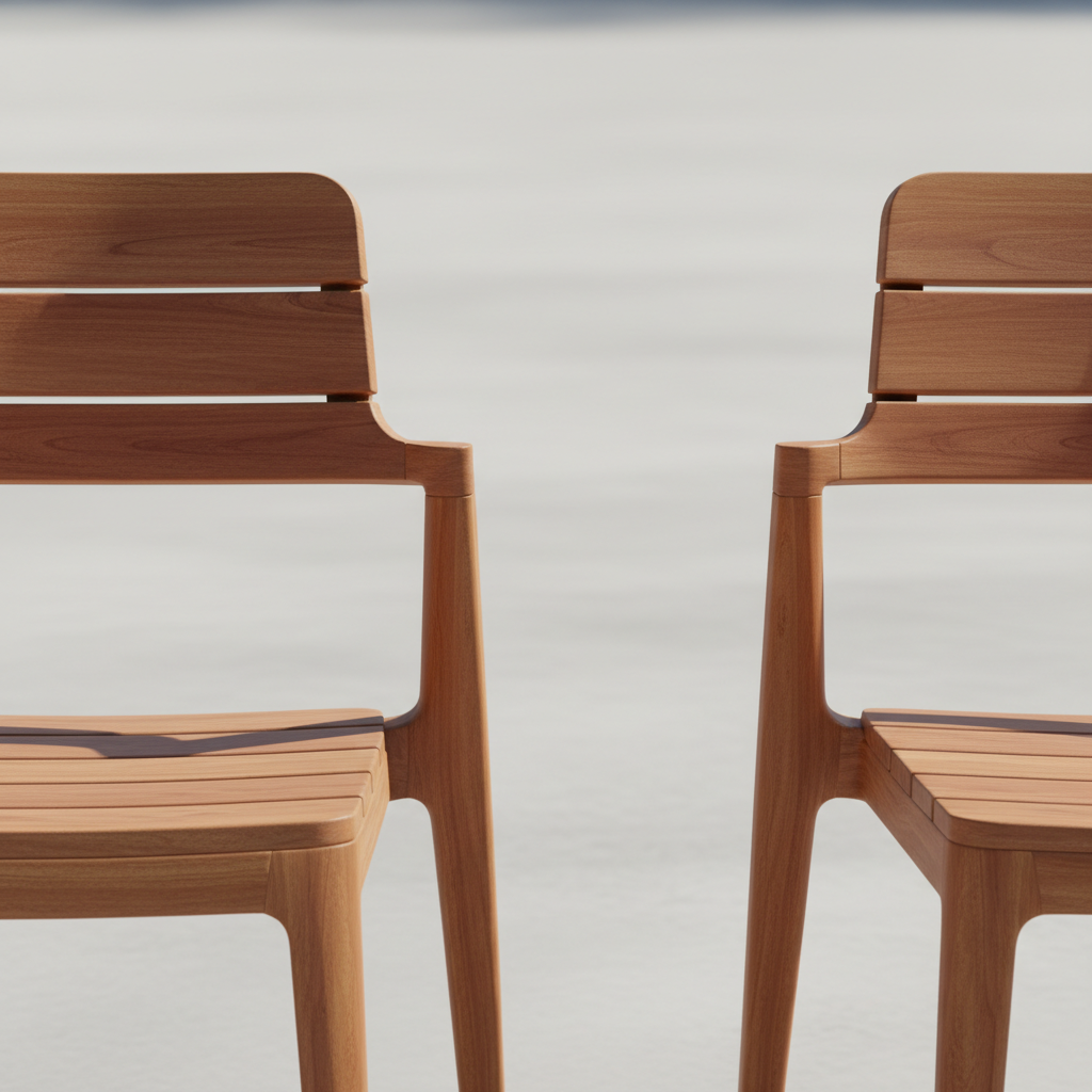 Why is this important? Many factories substitute Grade B/C teak to lower costs while still marketing the product as “solid teak.” This practice deceives the consumer and leads to premature silvering and cracking of the furniture.