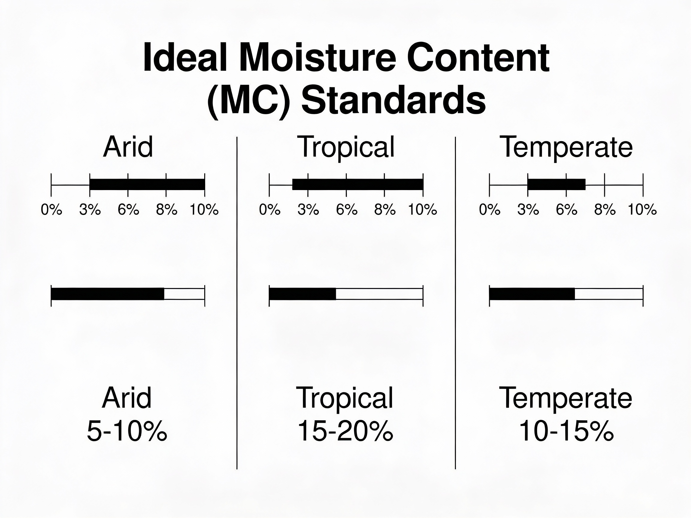 - Tropical Zones (15-20%): Required for high-humidity coastal areas to prevent the wood from absorbing excess ambient moisture.