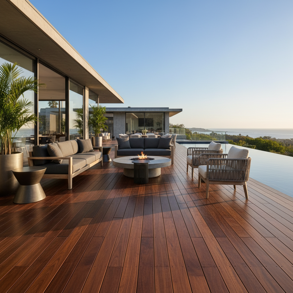 Key Takeaway: Ipe is the ultimate choice for “bulletproof” furniture in public or luxury coastal settings, though it requires specialized manufacturing expertise and a higher shipping budget.