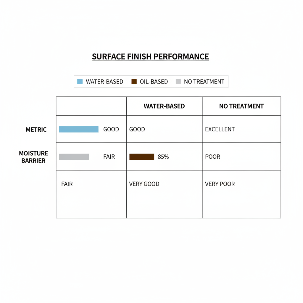 | Oil Content | High (Natural) | Low (Needs Finish) | Critical for rot protection |