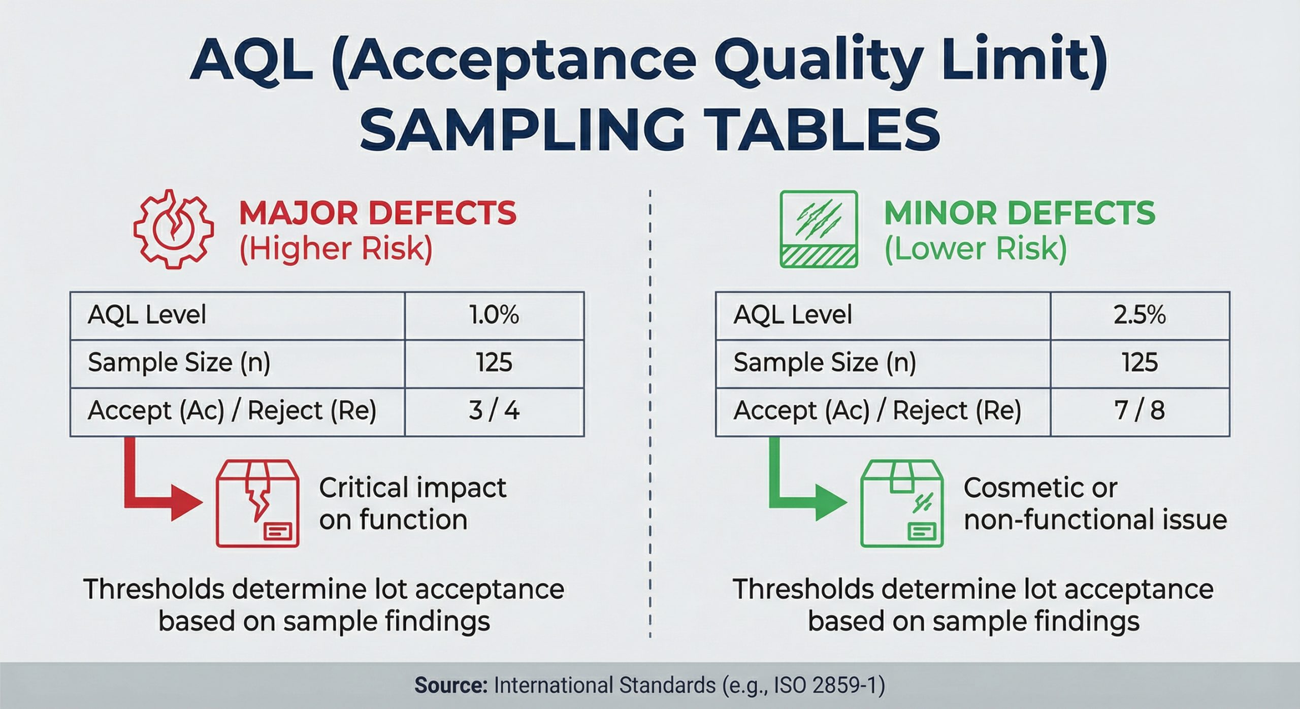 | Sample Size | AQL Tables (ISO 2859) | Statistical validity of findings |