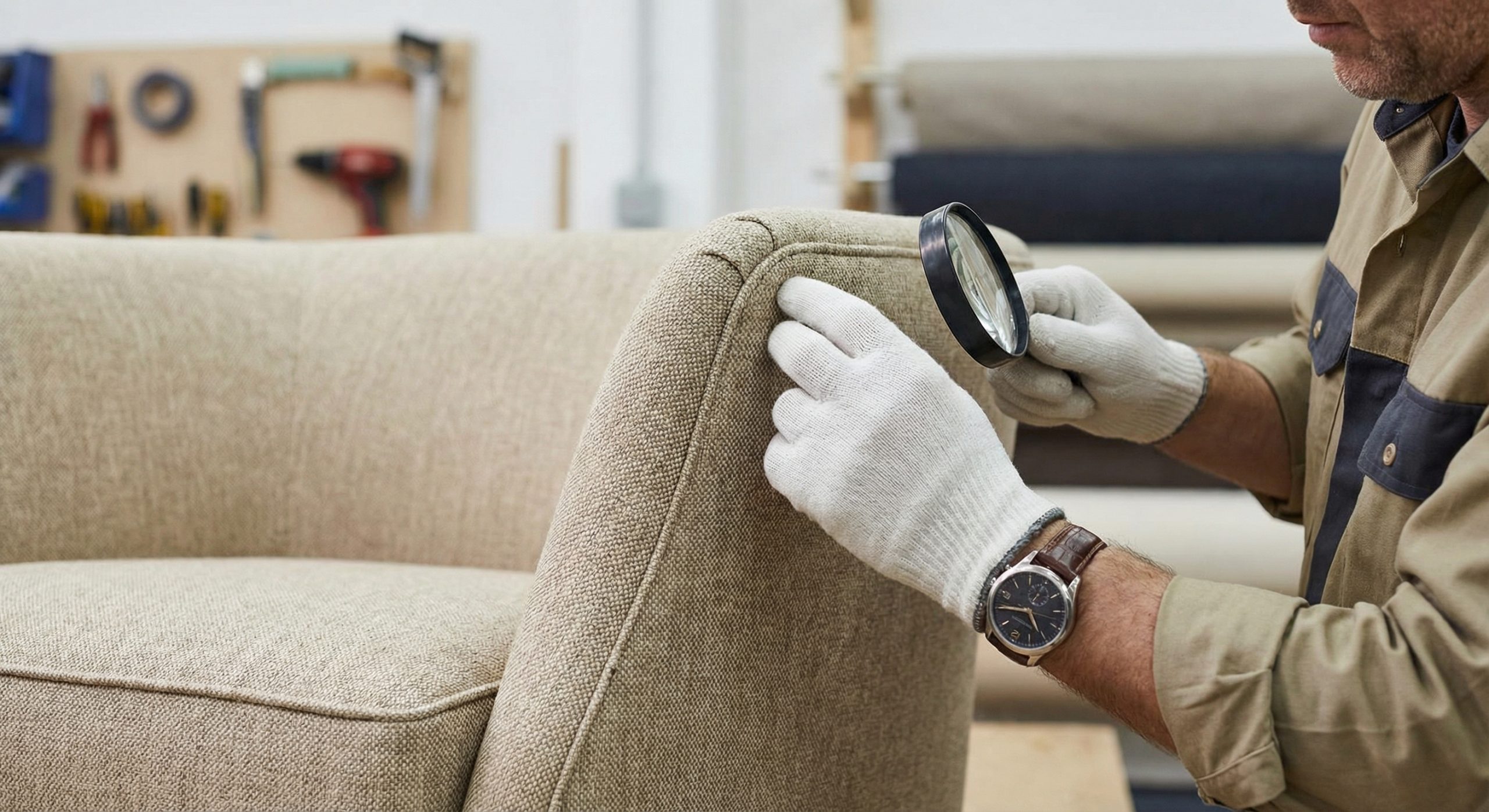 Upholstery must be scrutinized for rub count resistance and flame retardancy to ensure it meets both durability and safety mandates. The checklist includes checks for “crocking” (color transfer) and density verification of the foam padding to prevent premature sagging.