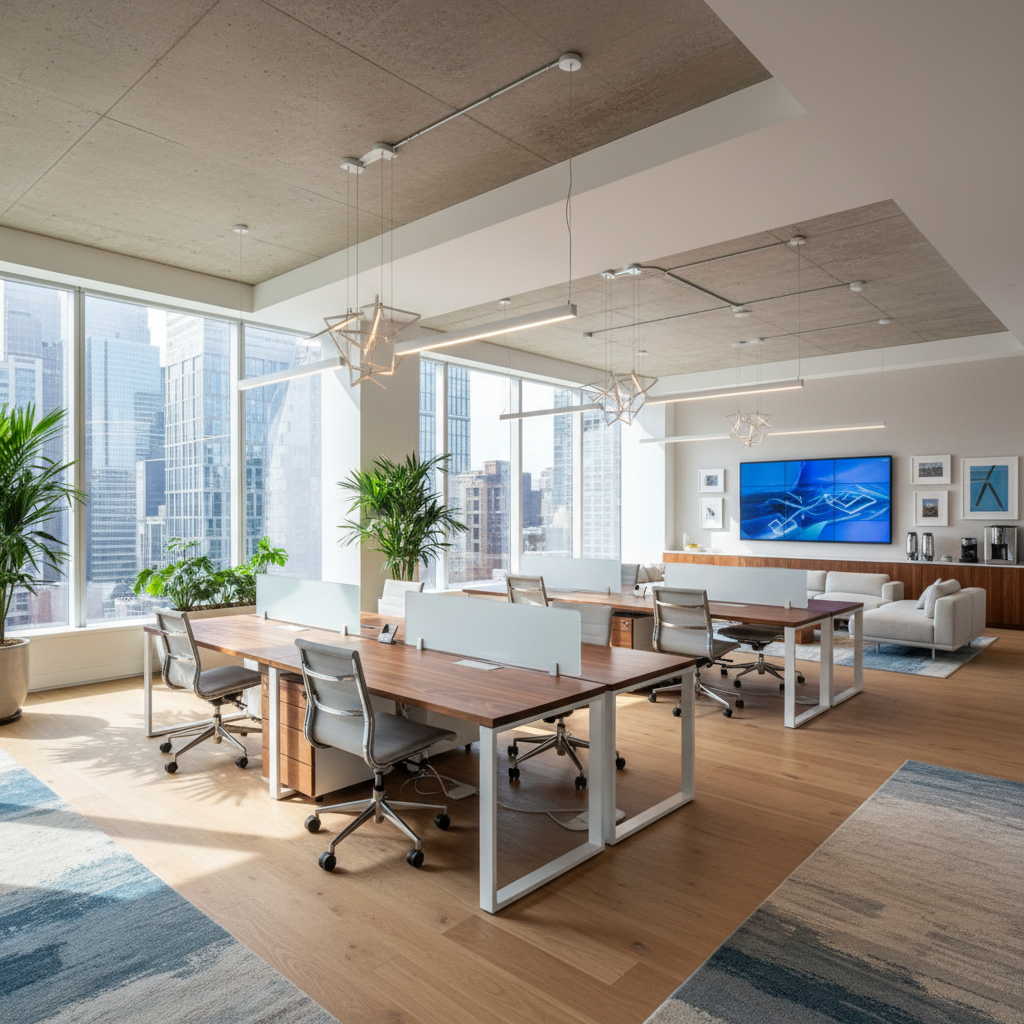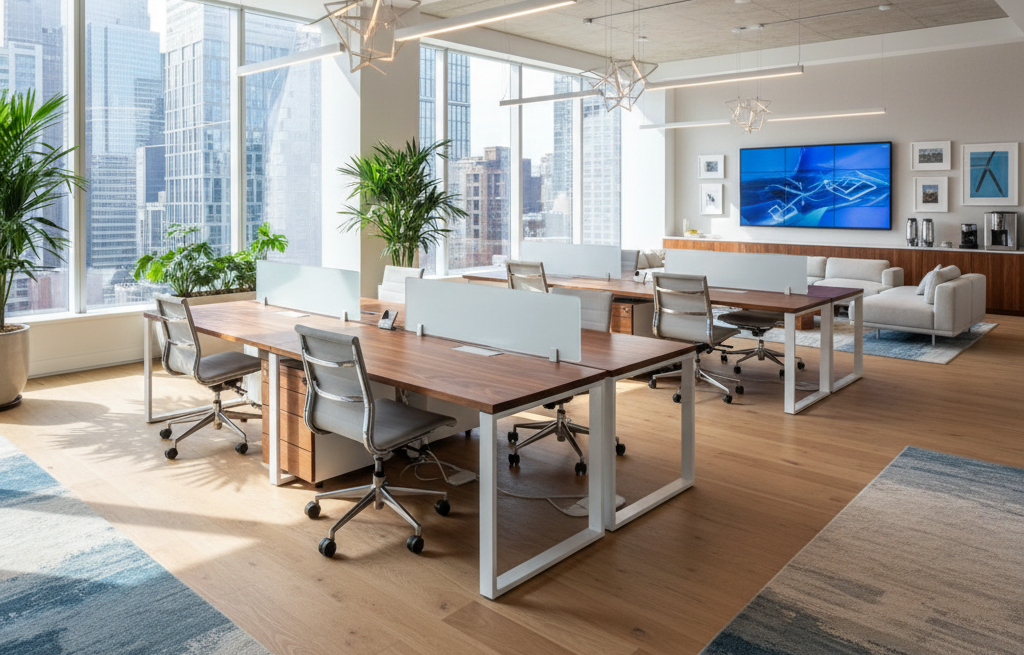 Key Takeaway: Hybrid-ready offices replace permanent personal desks with flexible neighborhoods and standardized technology to support a transient, high-performing workforce.