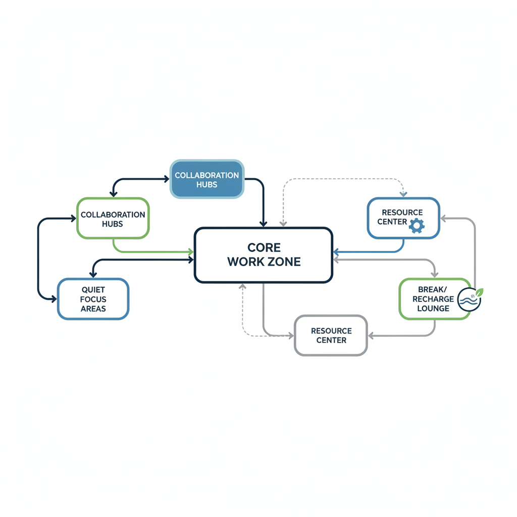 Key Takeaway: Growth-oriented layouts focus on flexibility and the intentional creation of spaces that foster spontaneous interaction and long-term scalability.