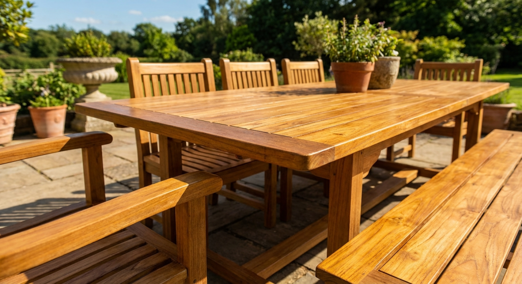 You should install plastic or stainless steel glides on the bottom of all furniture legs to lift the wood off the damp ground or wet patio surface. This simple barrier prevents “end-grain wicking,” which is the leading cause of leg rot and structural instability in garden sets. For pieces that sit on grass, consider placing them on small paving stones to ensure that air can circulate underneath the feet, keeping them dry and rot-free.