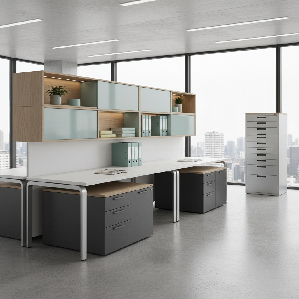 - Frame Construction: Ensure that desk legs and storage units use heavy-duty steel with powder-coated finishes for maximum rust resistance.