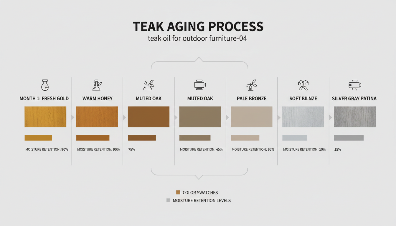 Key Takeaway: Teak aging can be managed through regular oiling for a golden look or specialized graying oils for a protected, weathered aesthetic.