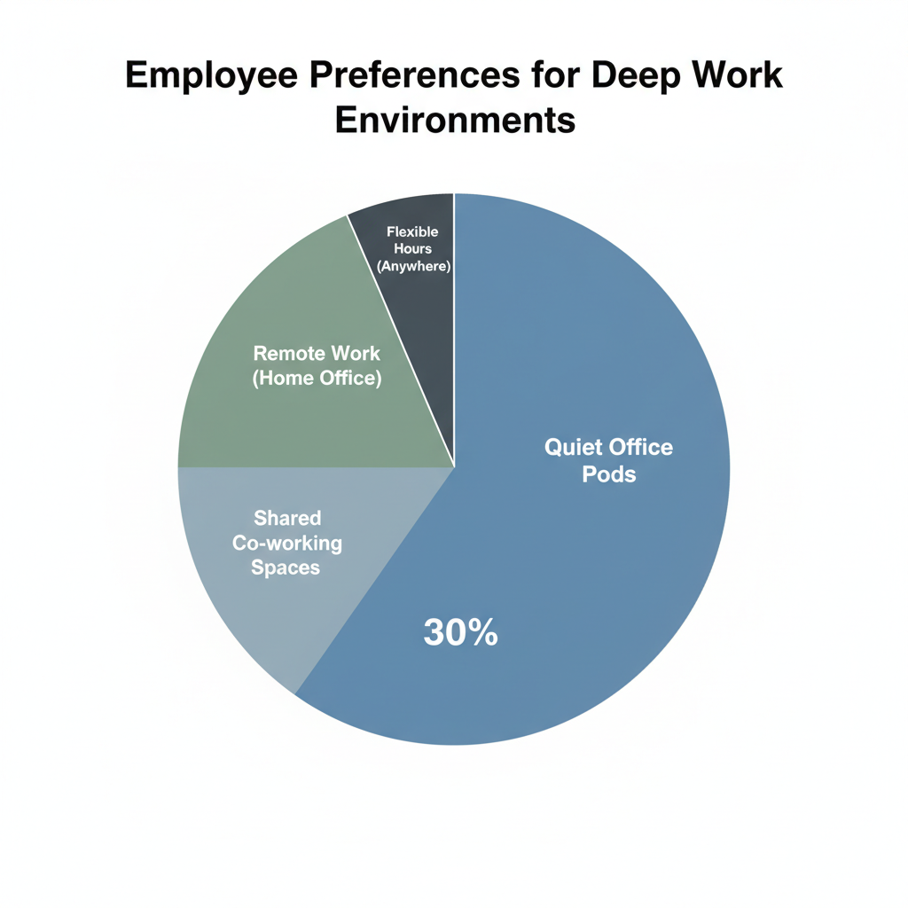Reducing noise pollution through acoustic panels or private pods is almost always the most effective intervention because sound is the primary killer of concentration in modern offices.