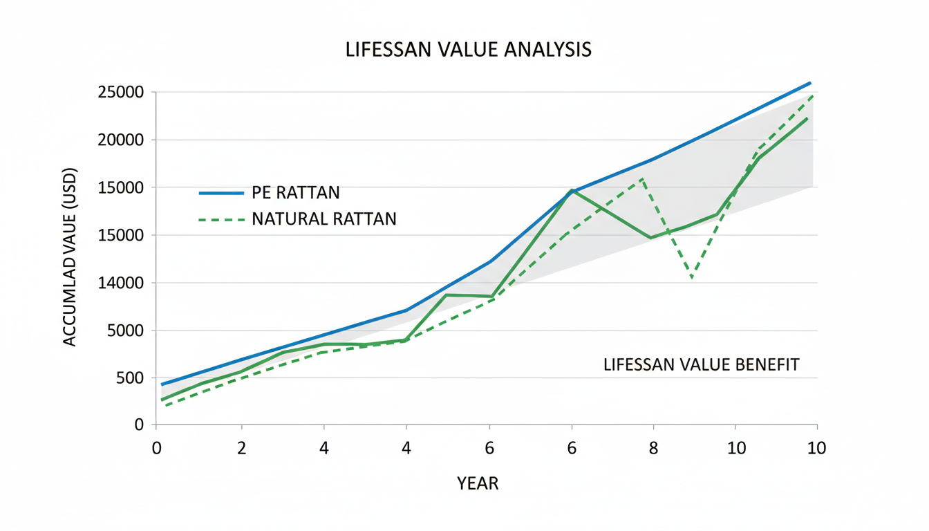 Key Takeaway: PE rattan provides a 10–15 year outdoor lifespan, significantly outperforming natural vine in high-humidity and direct-sunlight environments.